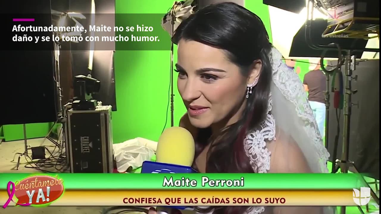 Maite no pudo contener la risa en ese momento y habló de su accidente minutos después, “yo me caigo siempre, no importa como esté vestida ni qué zapatos traiga, es parte de mi ser”. Afortunadamente la caída que sufrió no le provocó ninguna lesión, “es algo que está todo en mí entonces vestida de novia, tratando de correr, claro, me resbalé pero no me pasó nada, o sea me caí pero no me paso nada” explicó para 'Cuéntamelo Ya!'
