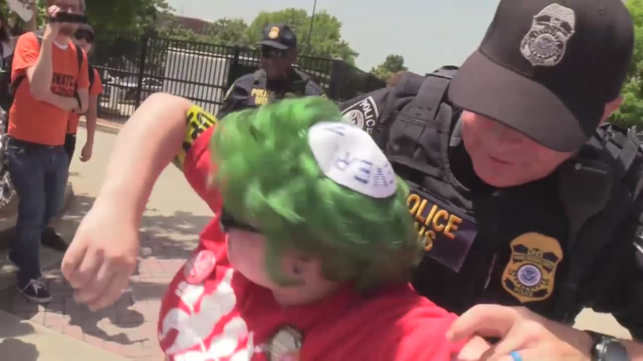 Al menos dos activistas terminaron detenidos luego de forcejeos entre manifestantes y agentes del Departamento de Seguridad Nacional (DHS), informaron los organizadores de la actividad.