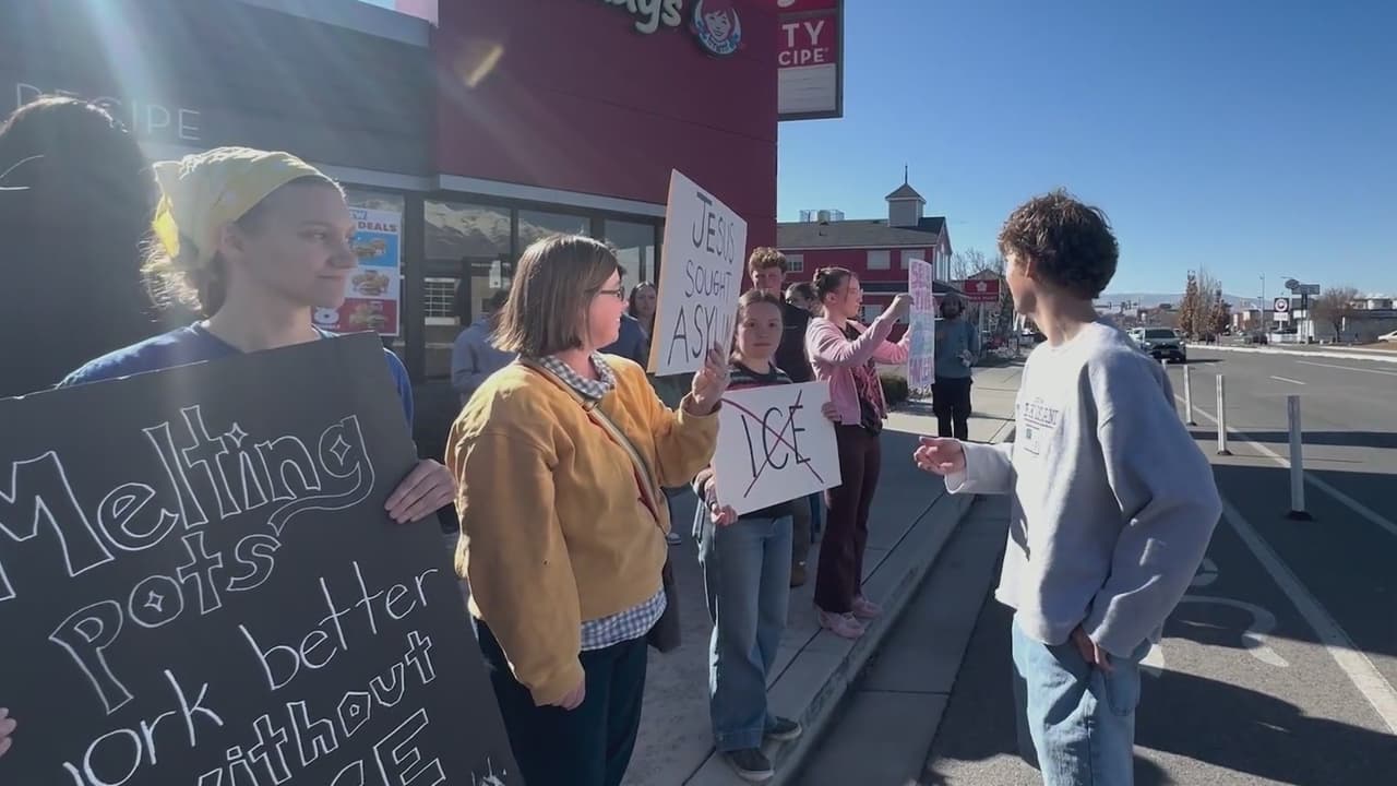 Decenas protestaron afuera de BYU en Provo contra la presencia de ICE en una feria de trabajo