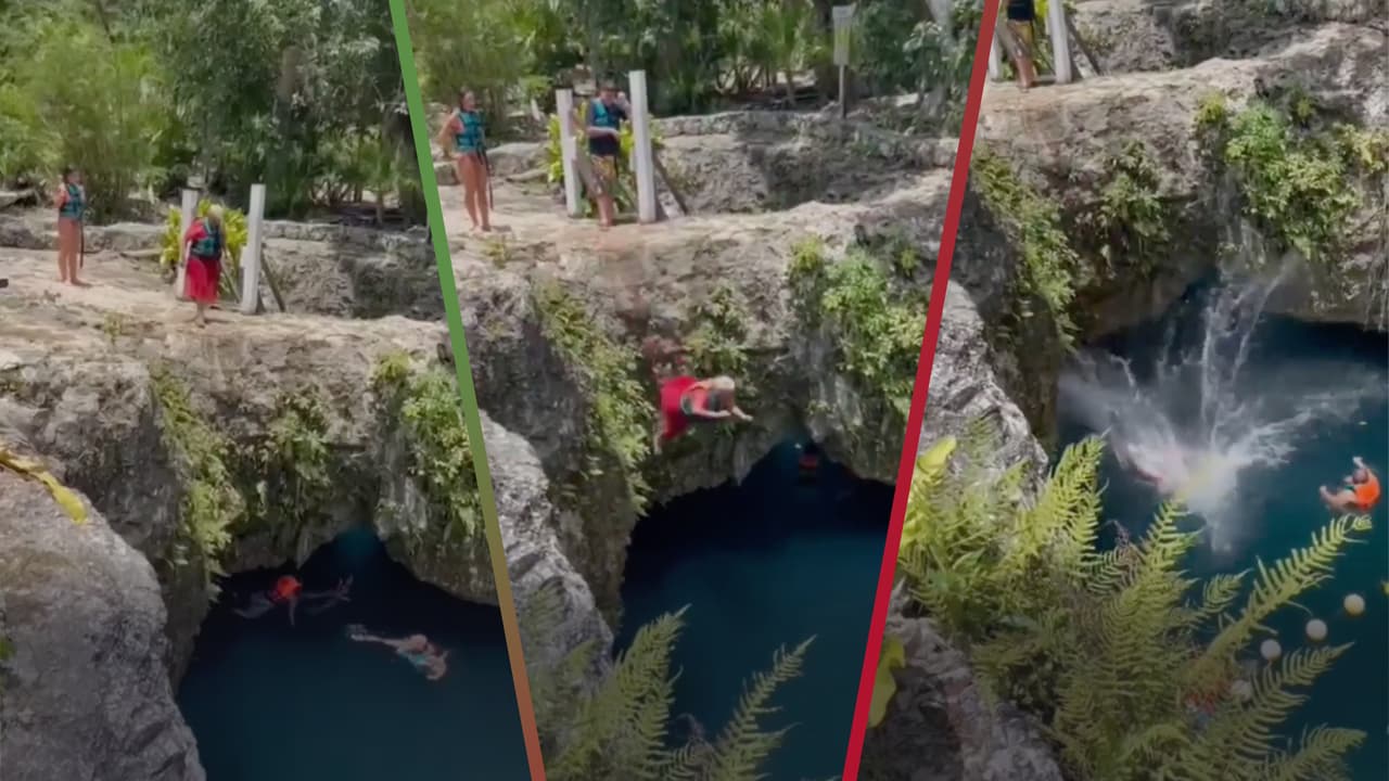 Anciana nerviosa se avienta un clavado dentro de un cenote y su familia graba su hazaña en video