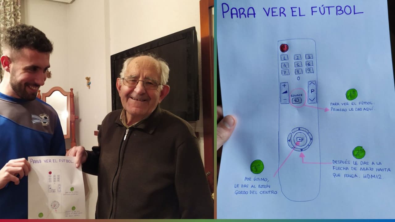 Al ver que su abuelo no podía sintonizar los partidos de fútbol, su nieto decidió hacerle un dibujo en donde le explicaba paso a paso las instrucciones a seguir.
