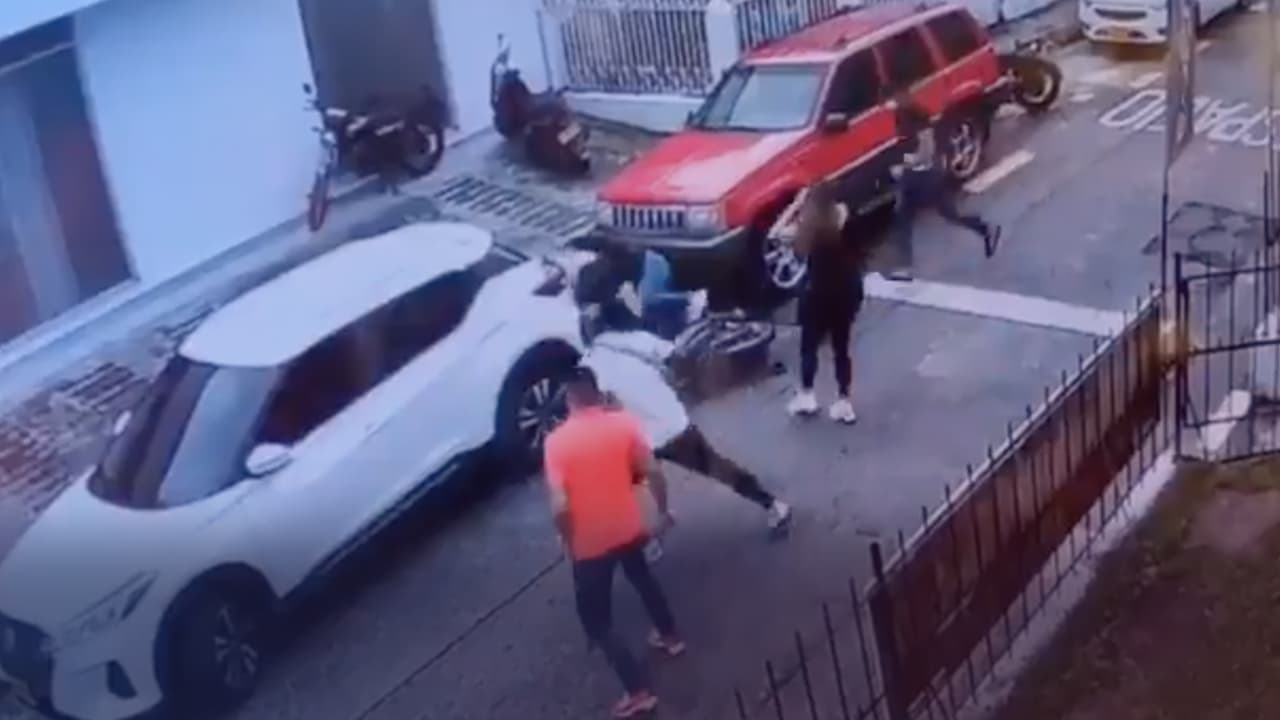 Las cámaras de seguridad, grabaron el momento en el que los delincuentes son atrapados mientras intentaban huir en una motocicleta.