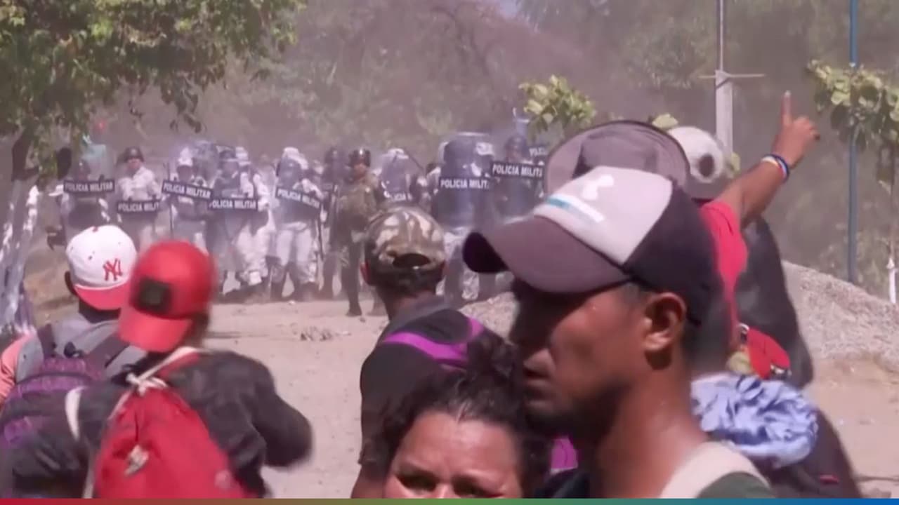 Caos y más de 400 arrestados cuando caravana de migrantes intentó cruzar a la fuerza la frontera con México