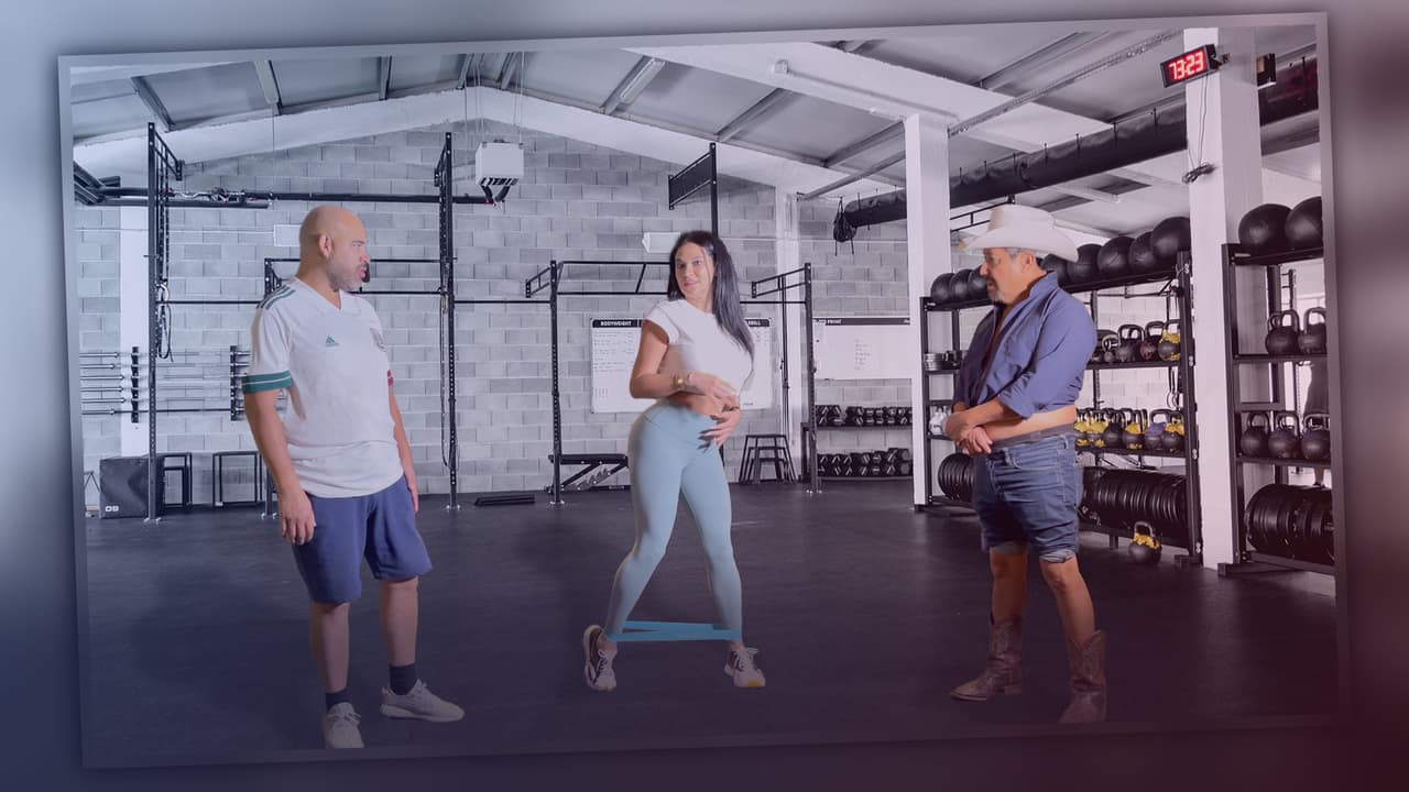 La locutora les mostró a sus compañeros, un poco de su rutina para mantenerse en forma.
