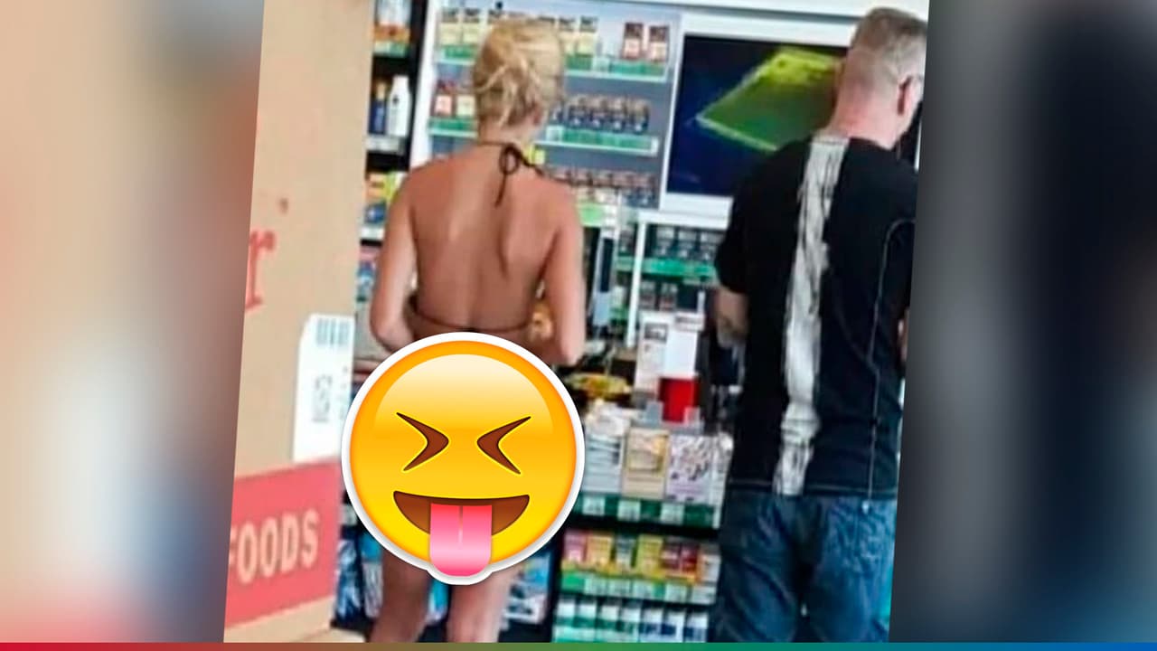 Chica en provocativo bikini llama la atención al ir así a tienda de autoservicio