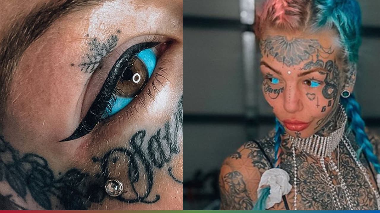 La joven que se hace llamar 'Dragón Blanco de Ojos Azules', perdió la vista temporalmente por este procedimiento que se suma a los 220 tatuajes con los que ya contaba.