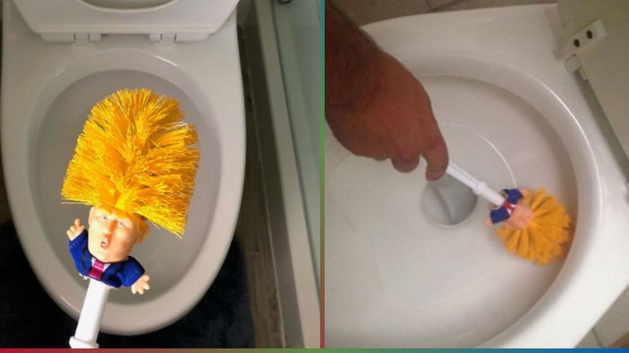 Convierten imagen de Trump en cepillo para limpiar el sanitario