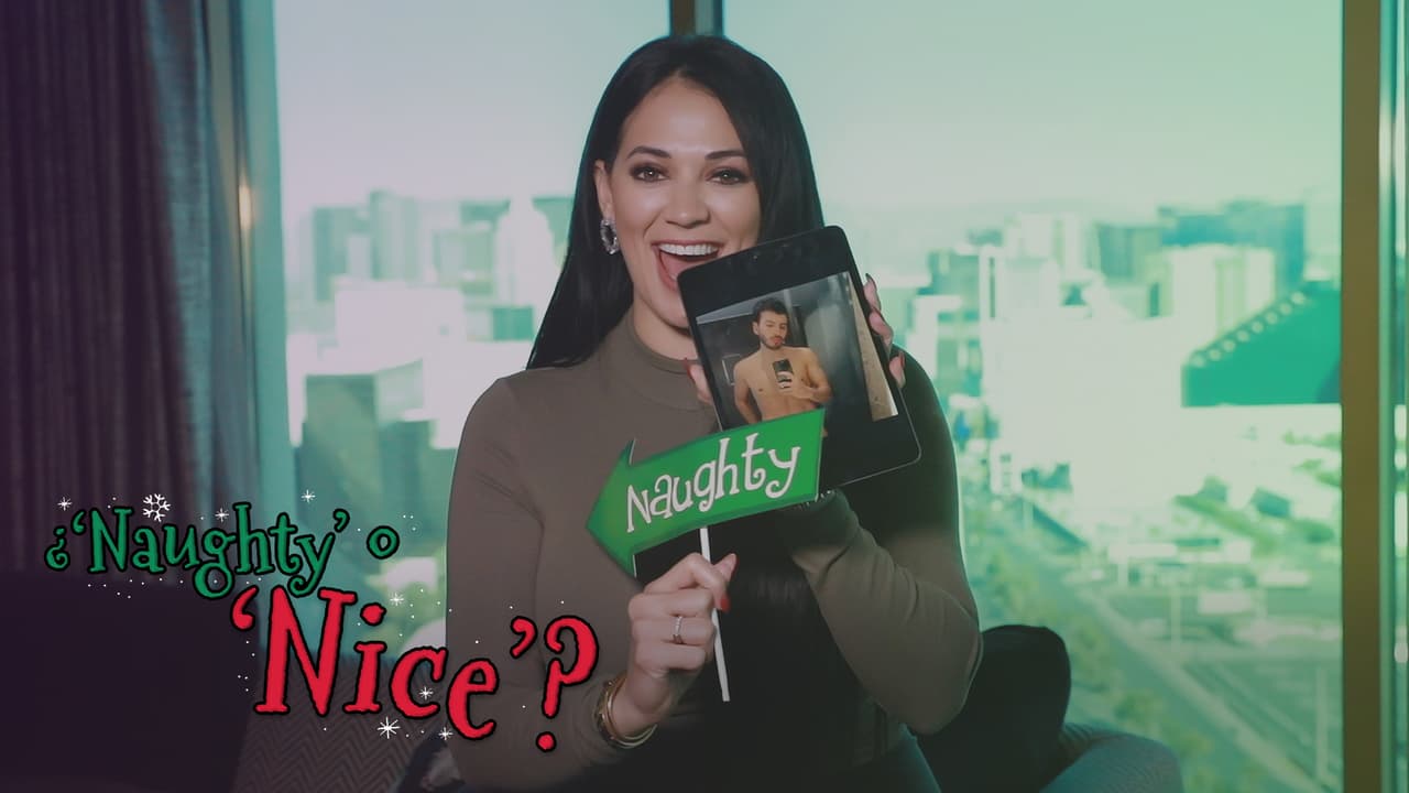La locutora de El Bueno, La Mala y El Feo quedó boquiabierta al ver una comprometedora foto del cantante colombiano, y no tuvo de otra que nombrarlo 'Naughty' durante este juego para celebrar la Navidad.