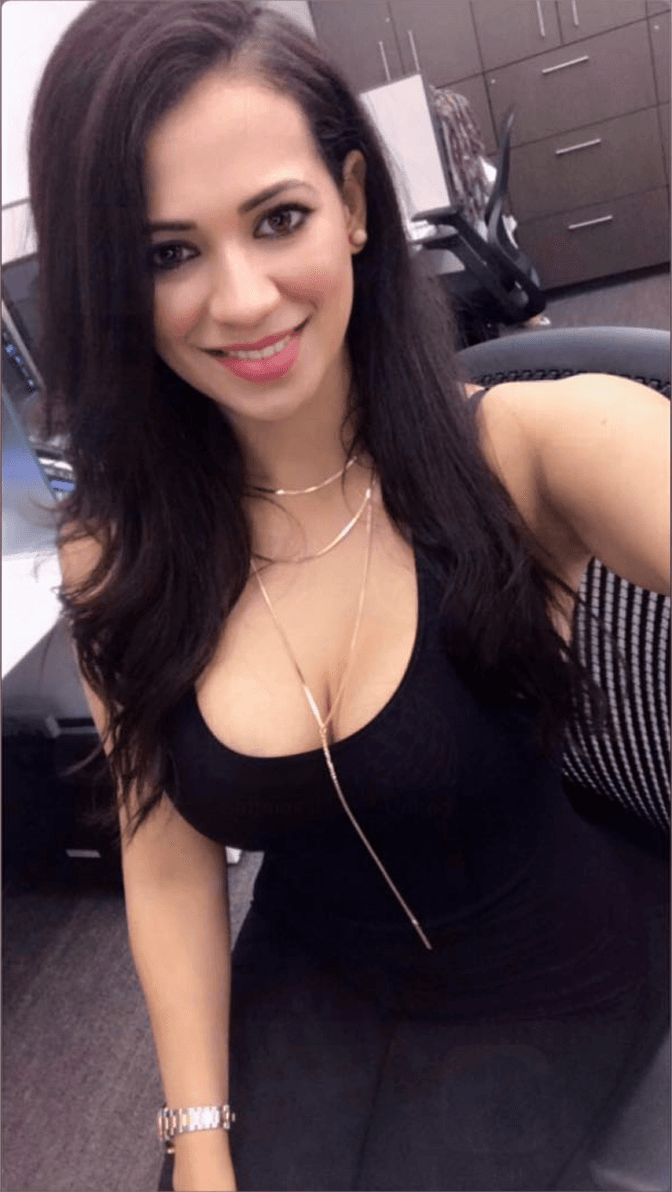 Carla Medrano mostrándonos su vestido color púrpura oscuro.