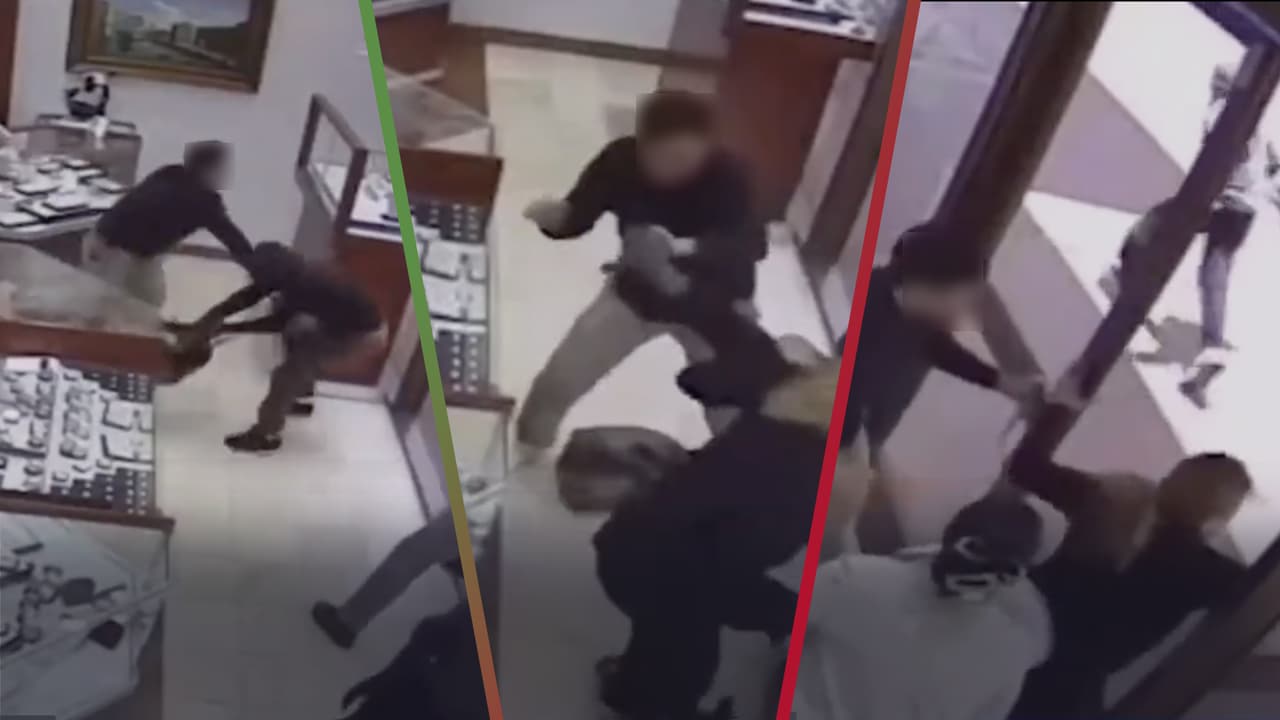 Cámaras de seguridad captaron el momento en que cuatro sospechosos entran al establecimiento en Huntington Beach e intentan robarse joyas, sin imaginar que los trabajadores se defenderían.