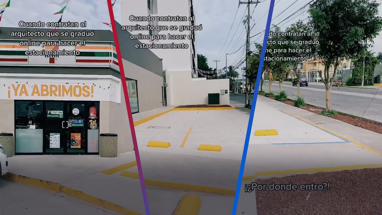 Un video en TikTok puso al descubierto el extraño estacionamiento para cuatro vehículos en un 7-Eleven, el cual no tiene entrada o posibilidad de acceso desde la calle.