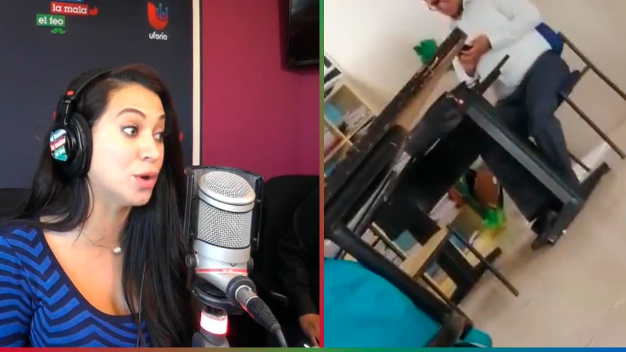 En las imágenes difundidas por sus alumnos, se puede ver que el hombre tomó su celular mientras una adolescente estaba en su escritorio y lo acercó a su falda como si estuviera grabando