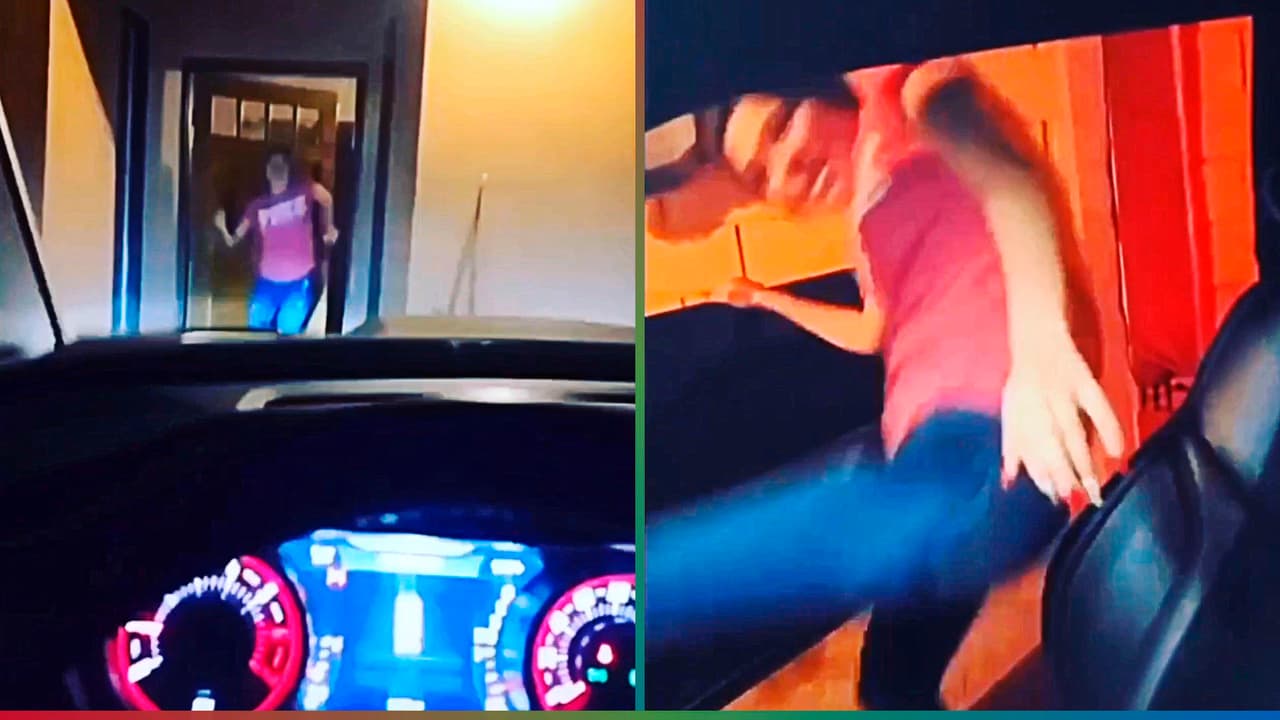 Apenas escucha que prende el carro, la mujer sale furiosa a subirse con su pareja y así evitar que se vaya solo a cualquier parte.