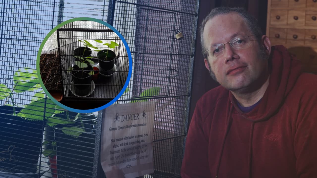 Daniel Emily-Jones, de 49 años, cultiva en su propia casa a la gympie-gympie o dendrocnide moroides, la cual podría causar efectos similares a ser quemado con acido caliente y electrocutado al mismo tiempo.
