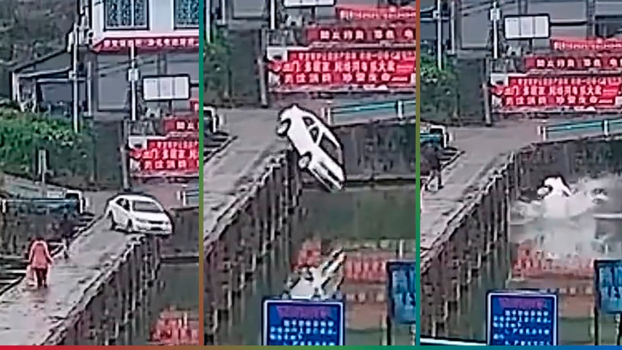 Por ir distraído usando su celular, un conductor perdió el control del vehículo cuando iba pasando por un puente.