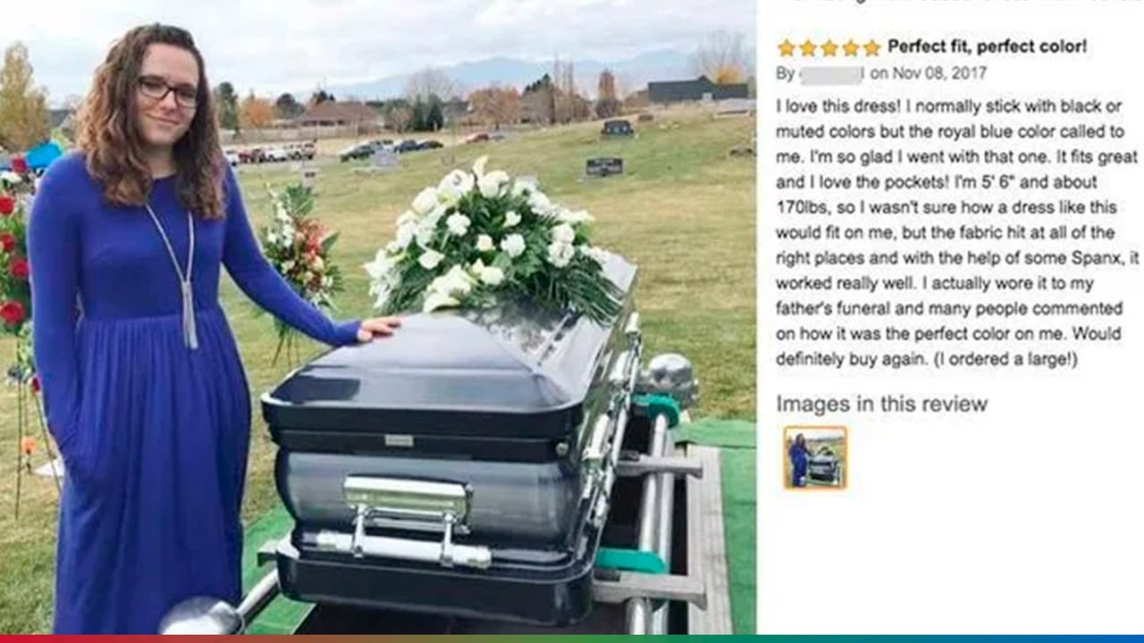 La critican por calificar un vestido que compró para el funeral de su padre y subir la foto al lado del ataúd