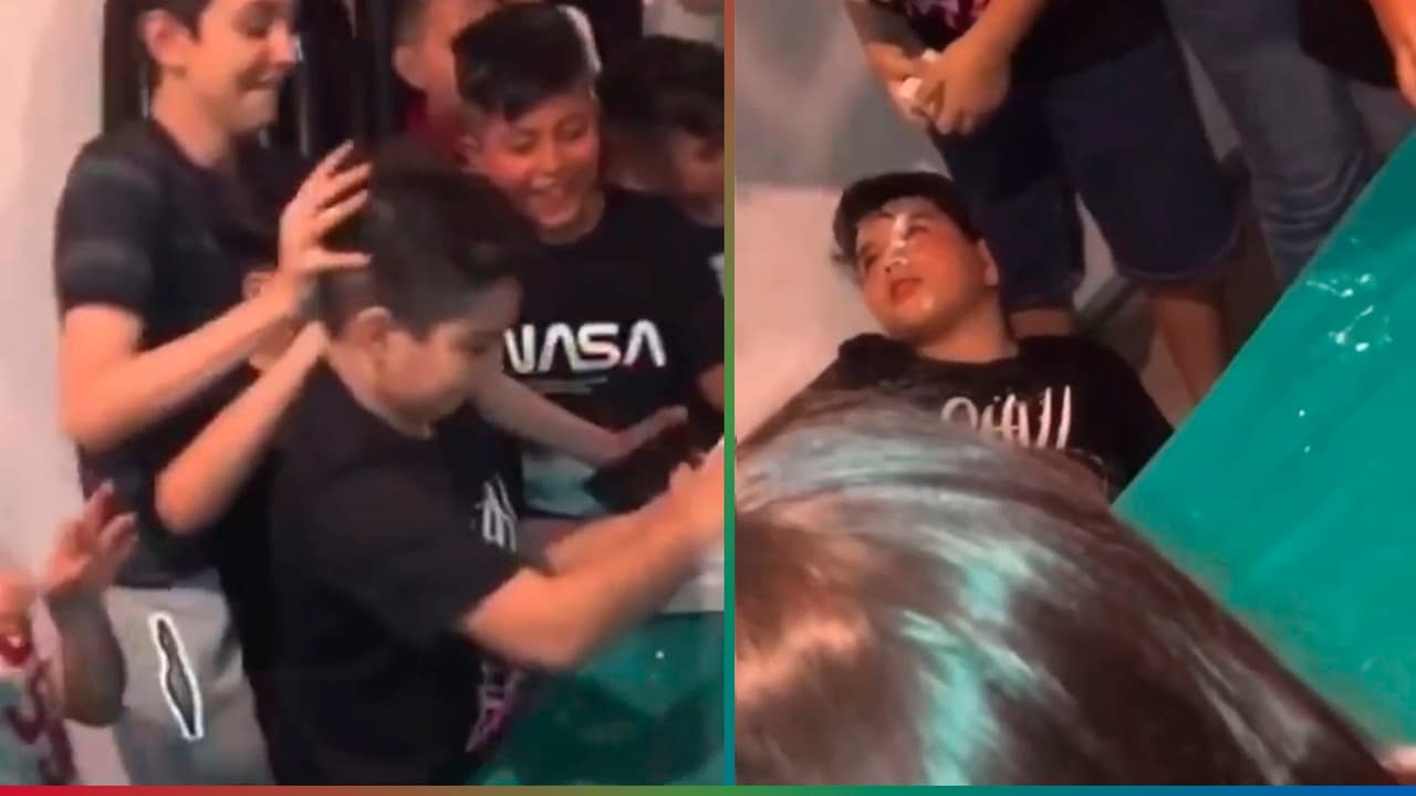 "La mamá se paniquió": Niño finge desmayarse después de que le embarraron la cara en su pastel de cumpleaños