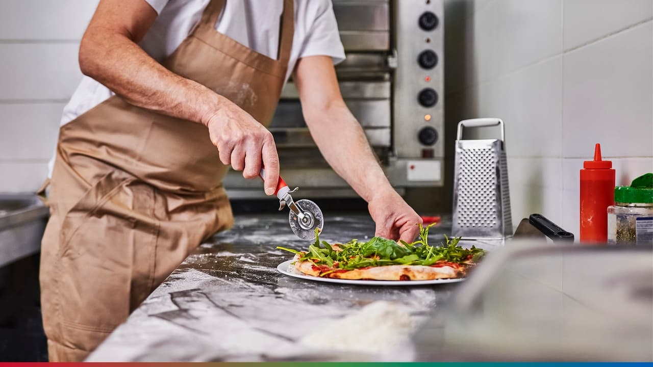 Ladrón entra armado con un machete a un restaurante y su dueño se defiende aventándole pizza