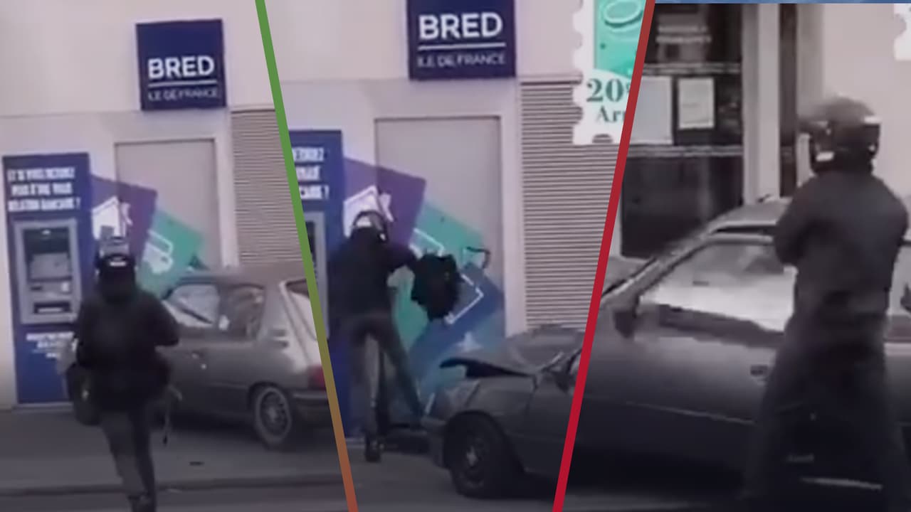 Ladrones intentan robar cajero automático al estrellar su carro contra un banco y todo sale mal