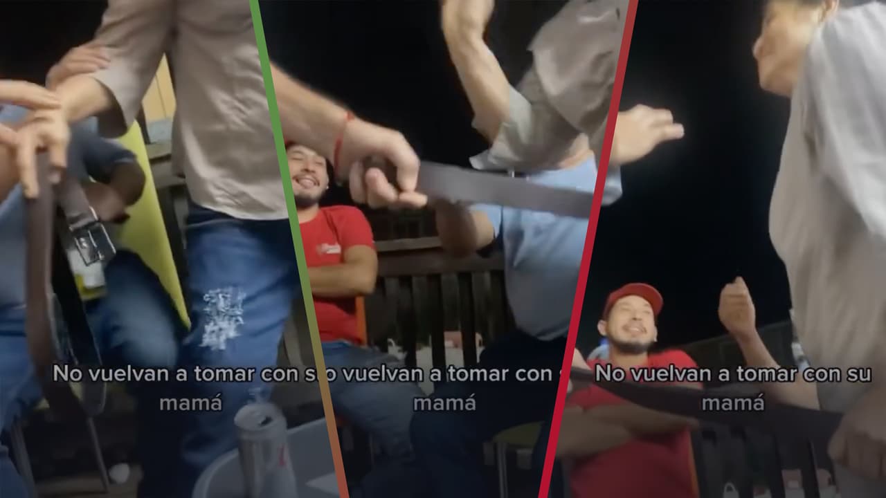 Las imágenes, que se viralizaron en las redes sociales, muestran cómo durante un reunión entre amigos, la mamá de uno de ellos saca el cinturón e intenta pegarle a su hijo.