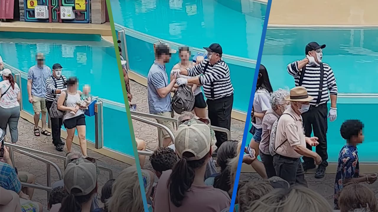 Un video de TikTok muestra cómo el artista detiene a una mujer que cargaba a un bebé y una mochila, mientras su pareja caminaba sin nada en las manos.