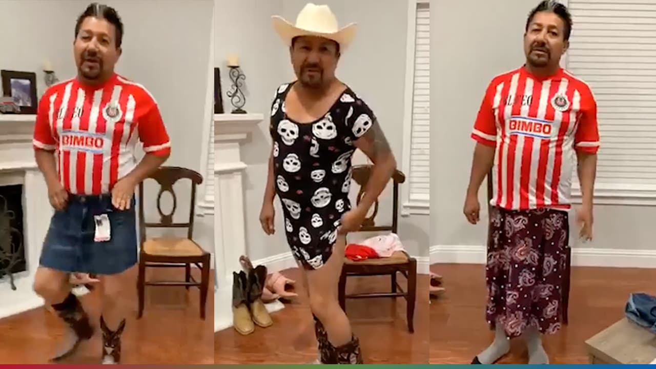 Mostrando pierna, El Feo se probó varios vestidos para pagarle la apuesta a El Pelón