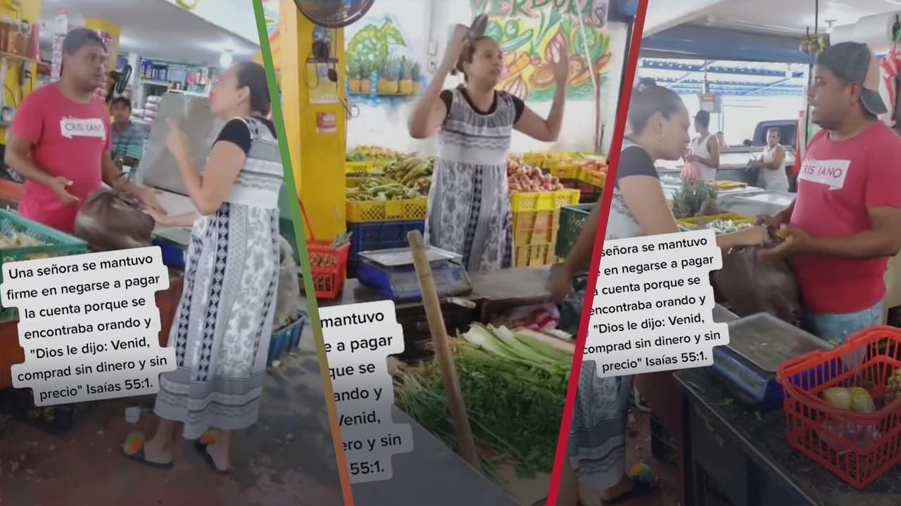Un video que se está haciendo viral en TikTok, muestra cómo esta señora va de compras a un mercado y a la hora de pagar le dice al dueño que Dios le dijo que sería gratis.
