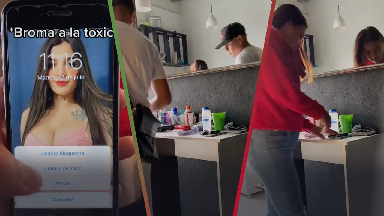 Con ayuda de una cámara escondida, el joven captó la reacción de su novia al darse cuenta de la foto de Karely Ruiz que tenía como fondo de pantalla en su teléfono.