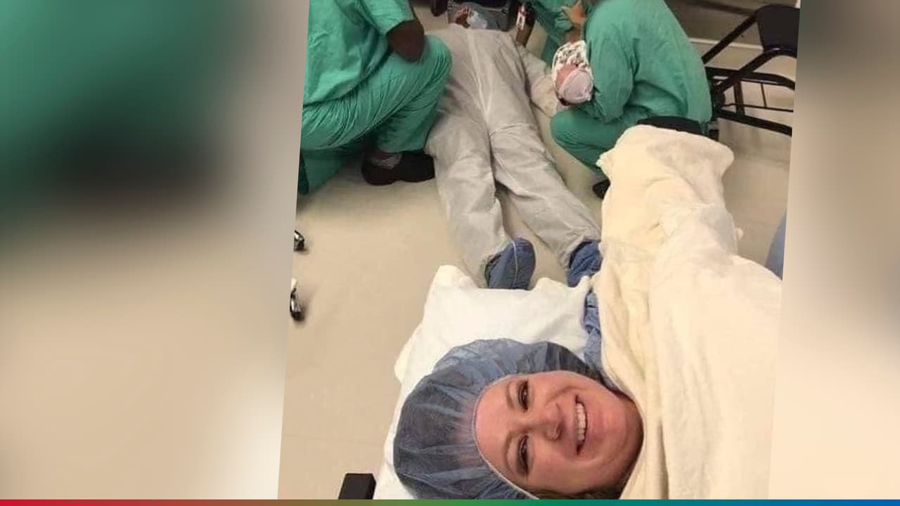 Padre se desmaya en sala de parto mientras nacía su primer bebé y su esposa lo expone con una 'selfie'