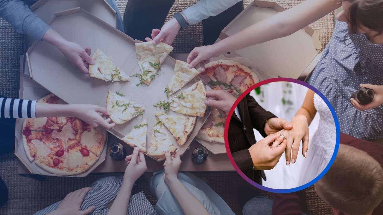 Una pareja se hizo viral luego de que en uno de los días más importantes de su vida decidieran servir pedazos de pizza de 'Little Cesar's', tras gastarse el resto del dinero en el salón, la música y las decoraciones.
