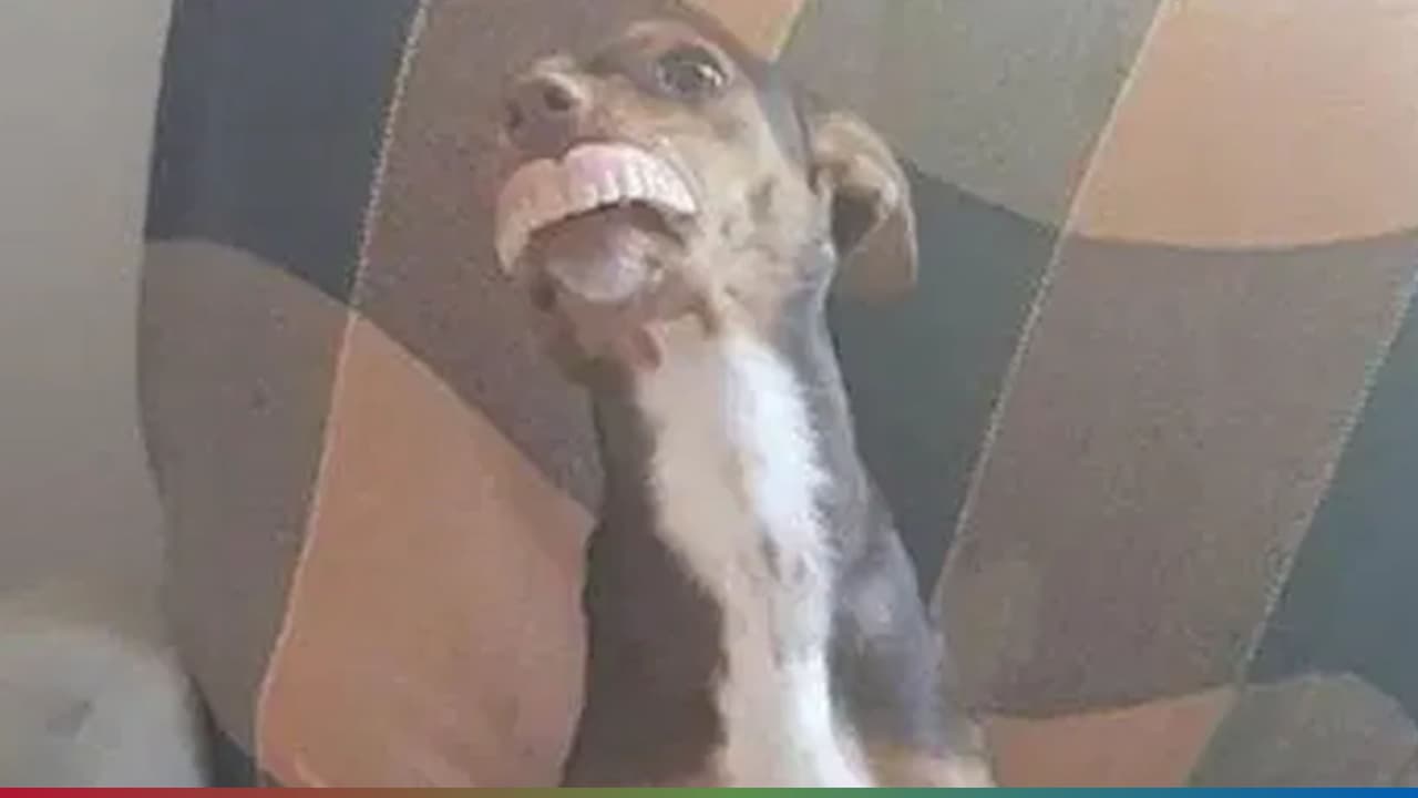 Perrito travieso se roba la dentadura de la abuela para ponérsela