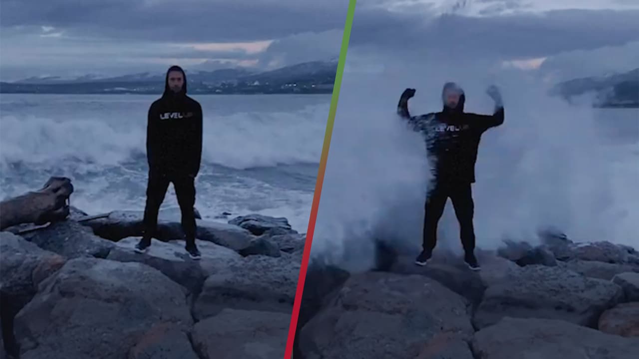 Retando a la naturaleza: Influencer se expuso ante una fuerte ola y se lo llevó como si fuera un juguete