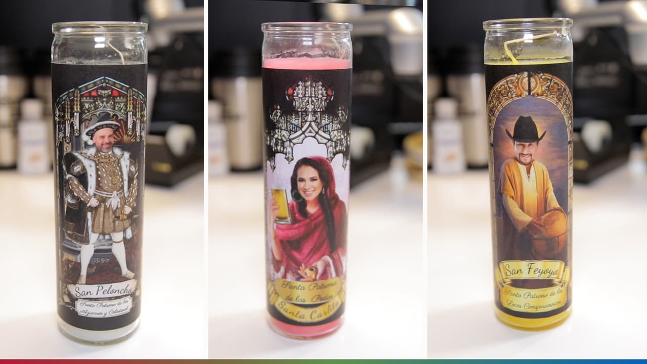 Santa Carlita, San Peloncho y San Feyoyo: Crean velas para la peda, el colesterol y las conspiraciones en honor a los locutores
