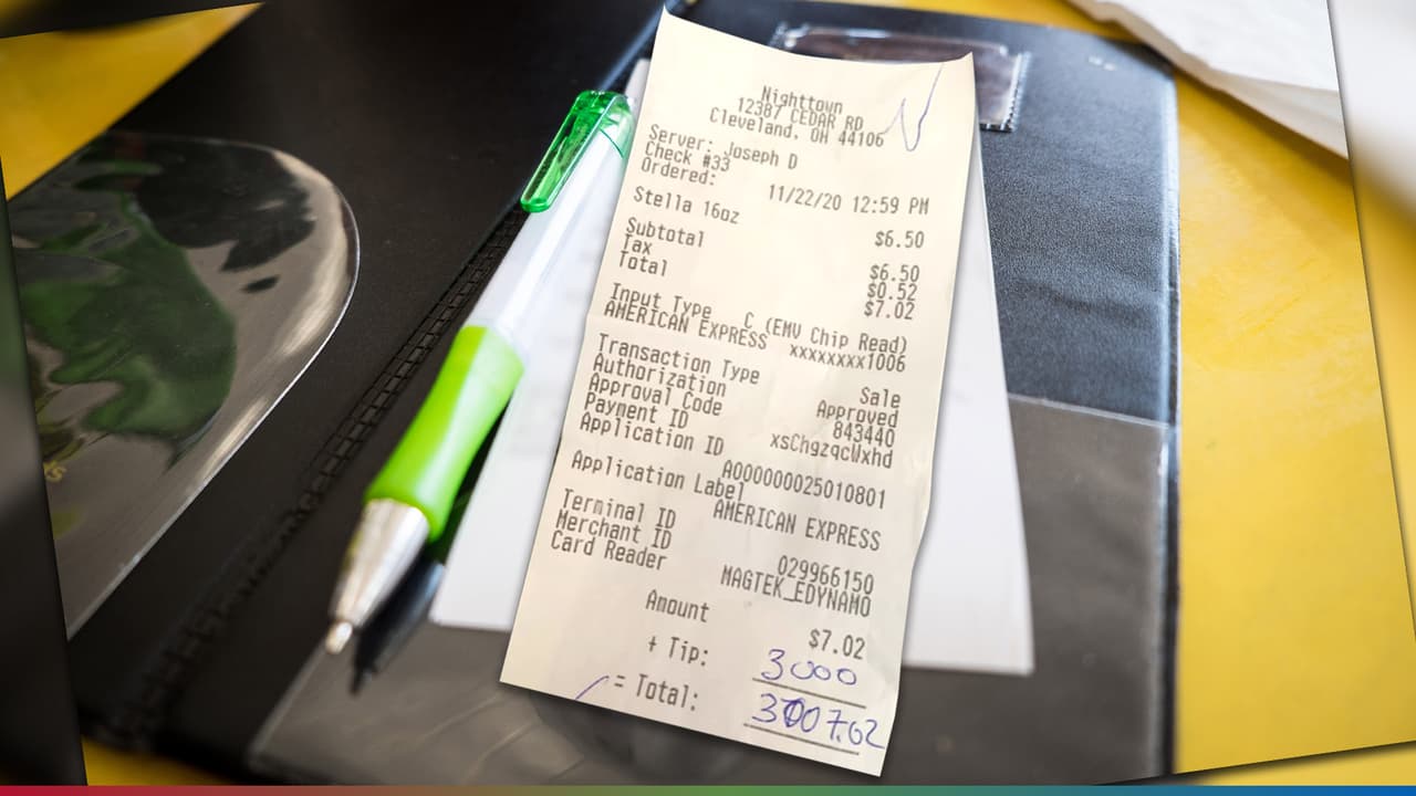 Se toma una cerveza de 7 dólares y deja una propina de $3,000