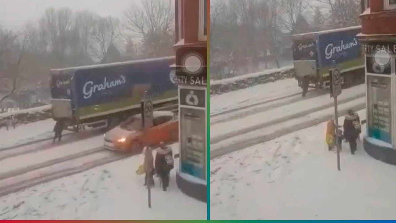 “Sí existe la Superwoman”: Mujer empuja trailer de leche atascado en la nieve con una fuerza casi sobrehumana