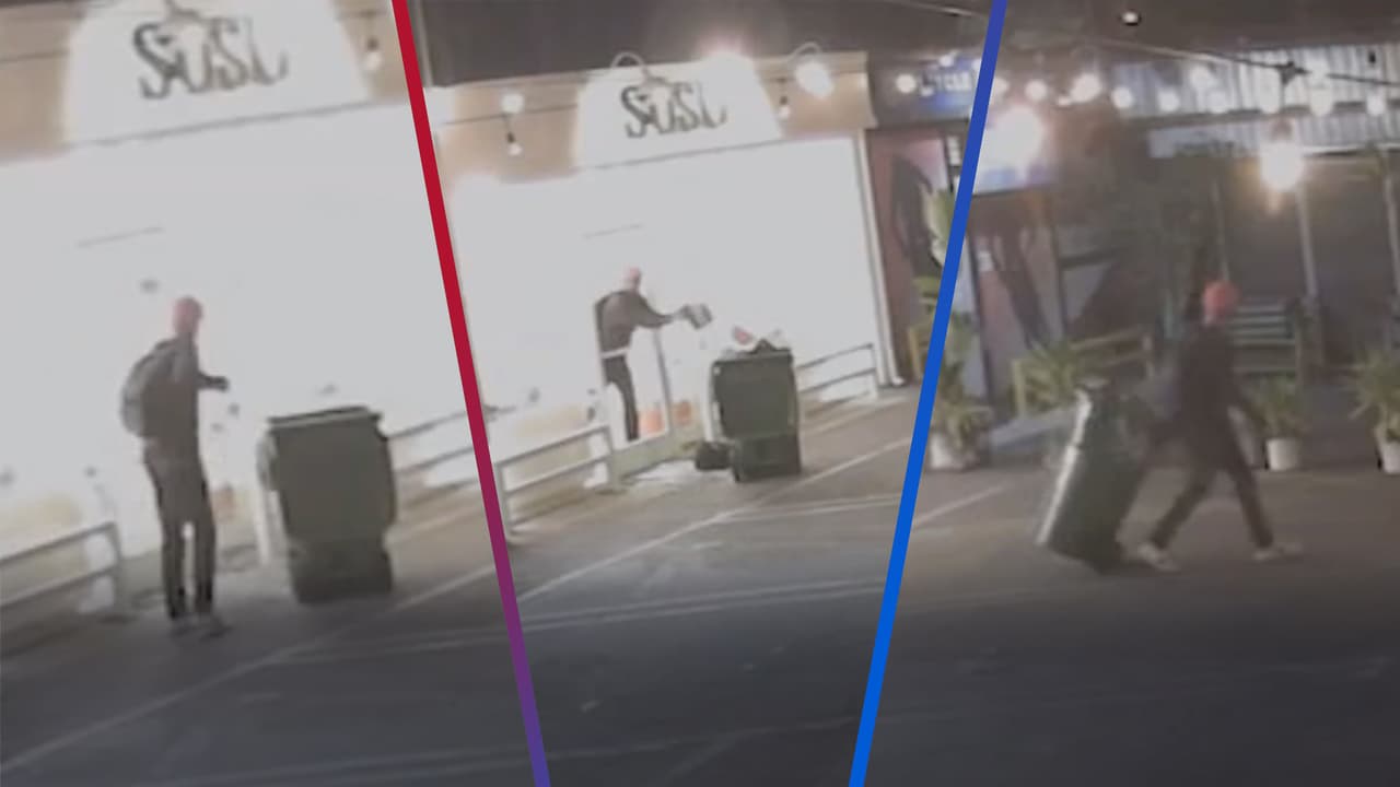 El suceso, que quedó captado por una cámara de seguridad, muestra cómo un hombre rompe el vidrio de la tienda, pone las bolsas dentro de un contenedor de basura y se retira como si nada.
