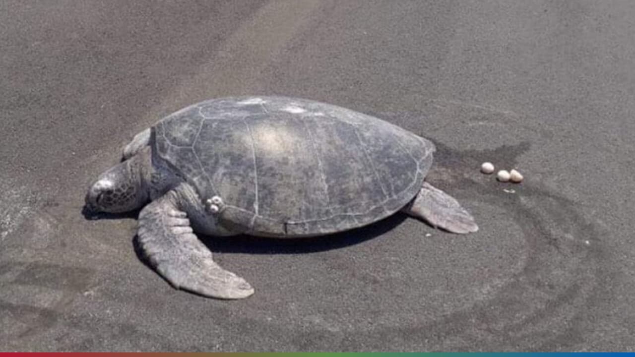 Tortuga sale del agua para poner sus huevos y se encuentra con la playa convertida en aeropuerto