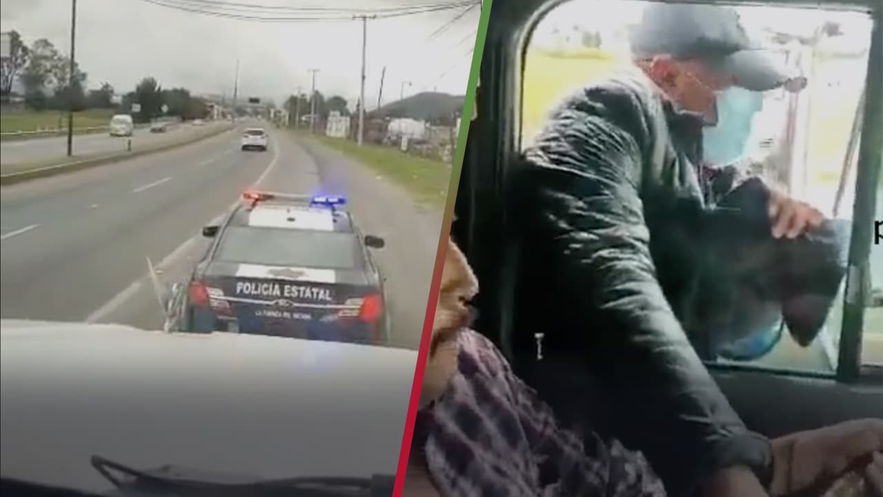 El suceso, que se viralizó en las redes sociales, muestra cómo el policía estatal se sube a la parte exterior de la puerta del camión y el chofer comienza a manejar sin importarle.