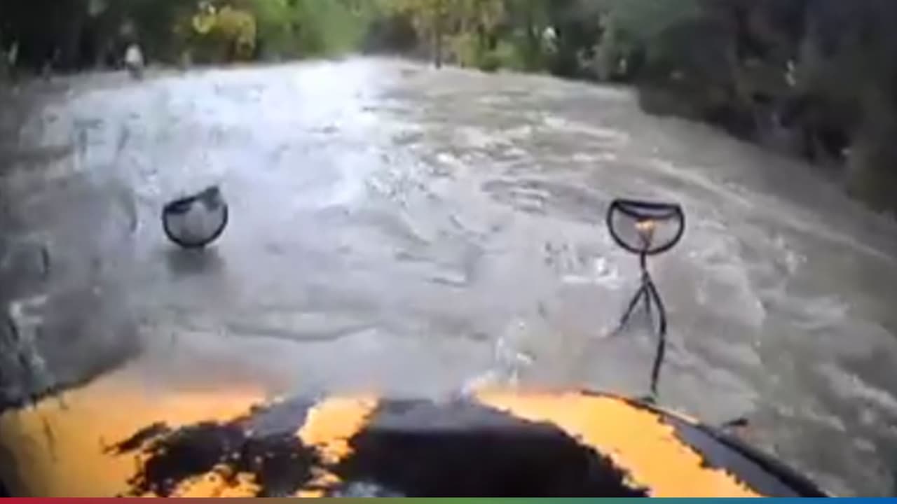 (Video) Arriesgado conductor de autobús escolar maneja a través de una calle inundada