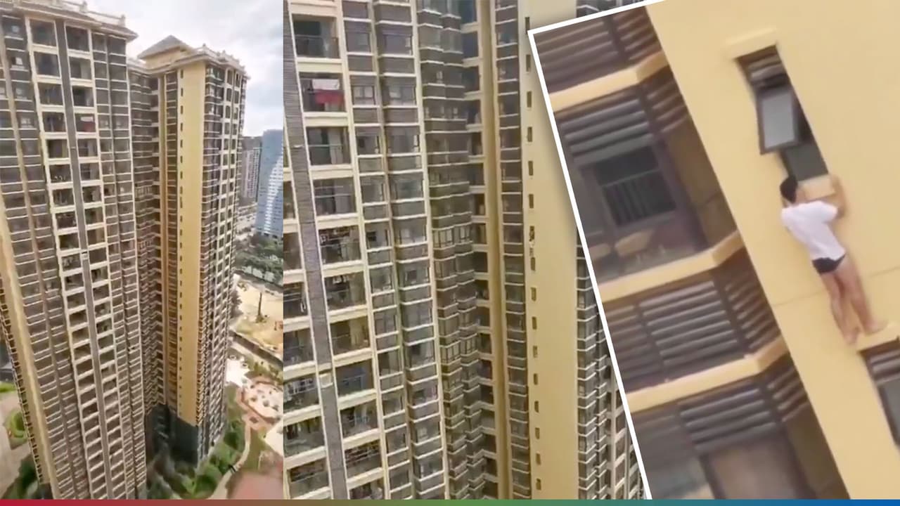 (Video) Colgado de la ventana en un piso 36, hombre trataba de ocultarse del marido de su amante