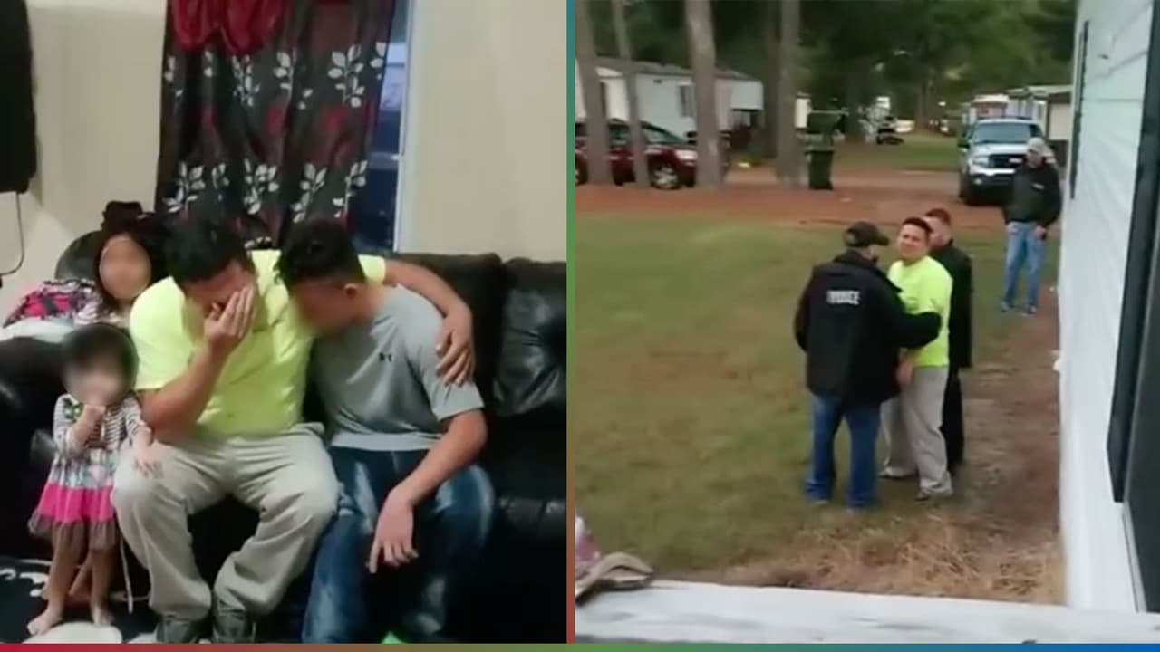 El hombre que se encontraba en su casa tuvo que responder el llamado que la migra hacía a su puerta, siendo arrestado mientras su familia no puede contener el llanto.
