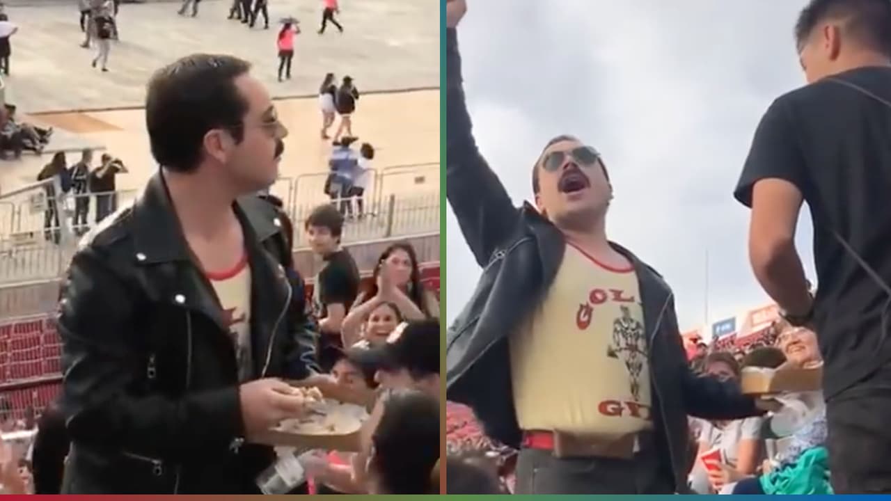 (Video) Disfrazado de Freddie Mercury, asistente a un concierto pone a cantar al público
