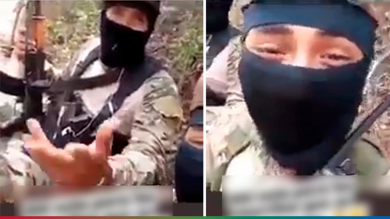 (Video) Encapuchados y armados con un 'cuerno de chivo', sicarios le dan consejo a jóvenes y niños