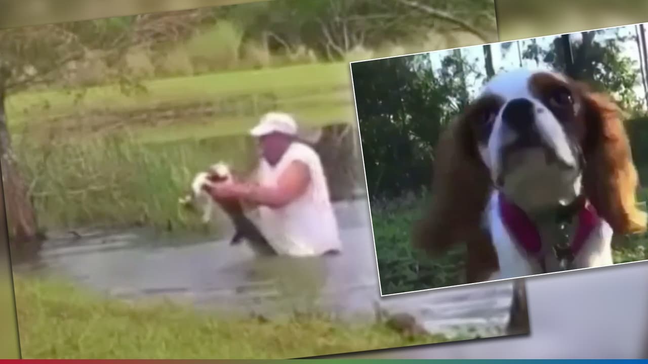 (Video) Hombre lucha contra un cocodrilo para salvarle la vida a su perrito