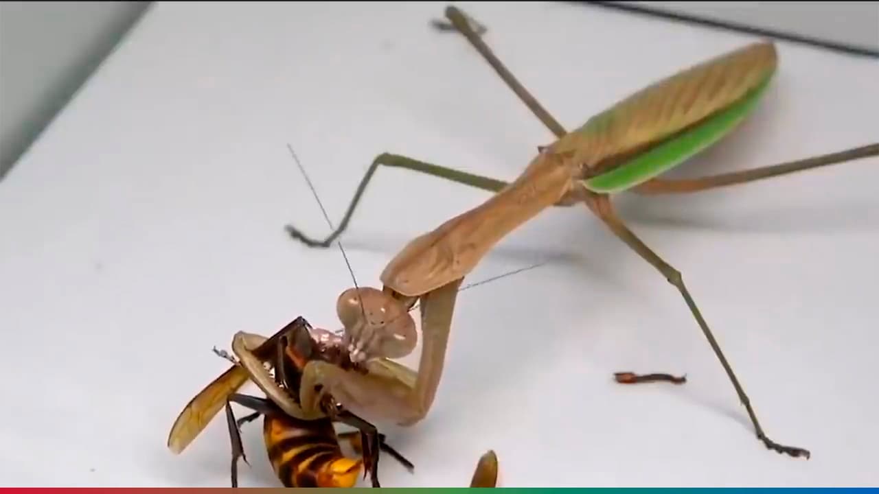 "Ya se encontró el avispón asesino con su verdugo", dijo El Feo luego de ver un video en el que una mantis religiosa se alimenta del temido insecto, que mide aproximadamente 2 pulgadas.