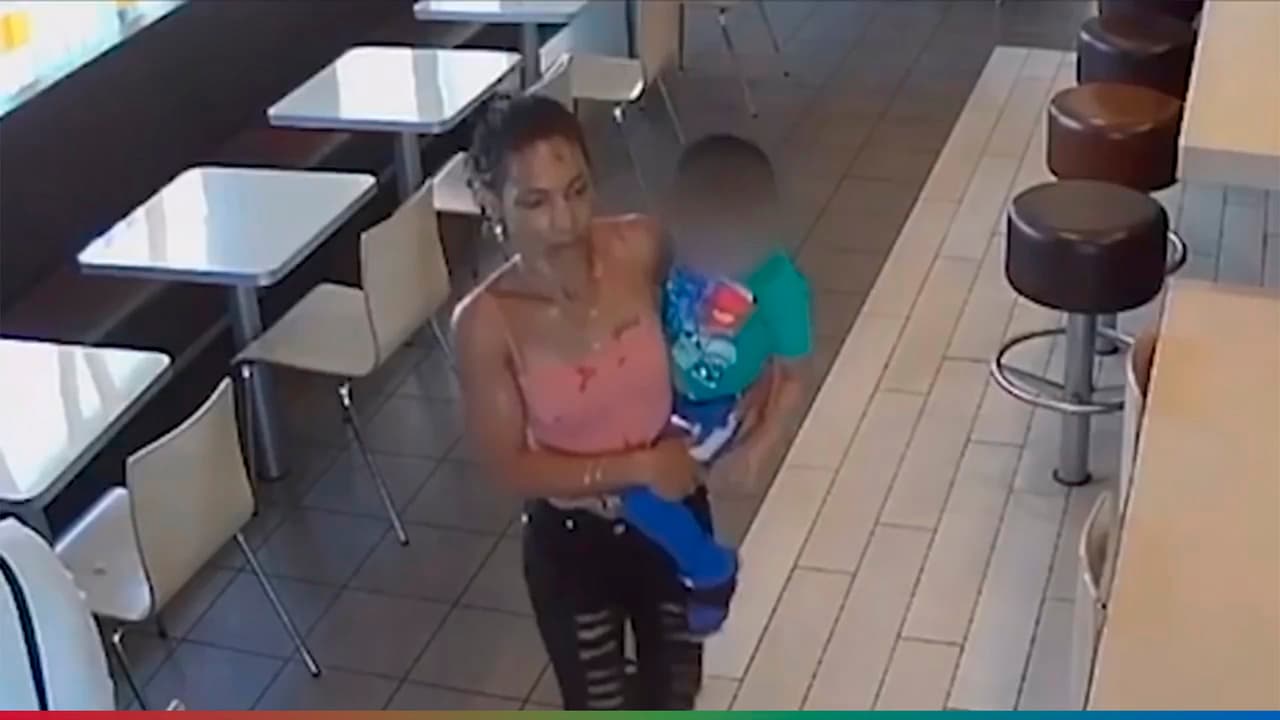 En las imágenes se puede ver cómo la mujer agarra al menor como si fuera su hijo para llevárselo; aunque afortunadamente lograron rescatar al pequeño, las autoridades aún buscan a la sospechosa.