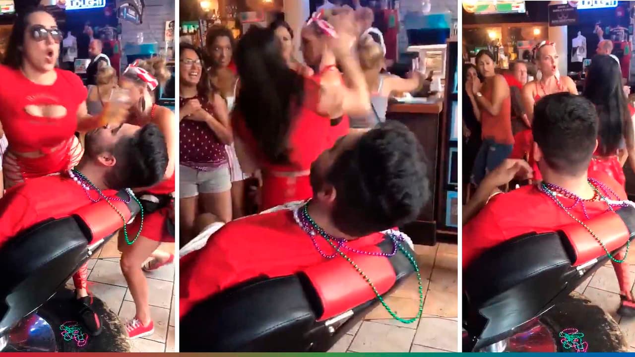 Mientras la 'bartender' estaba haciendo uno de los shows más populares del lugar con otro cliente, la mujer se acercó a darle una nalgada y su reacción fue inmediata.
