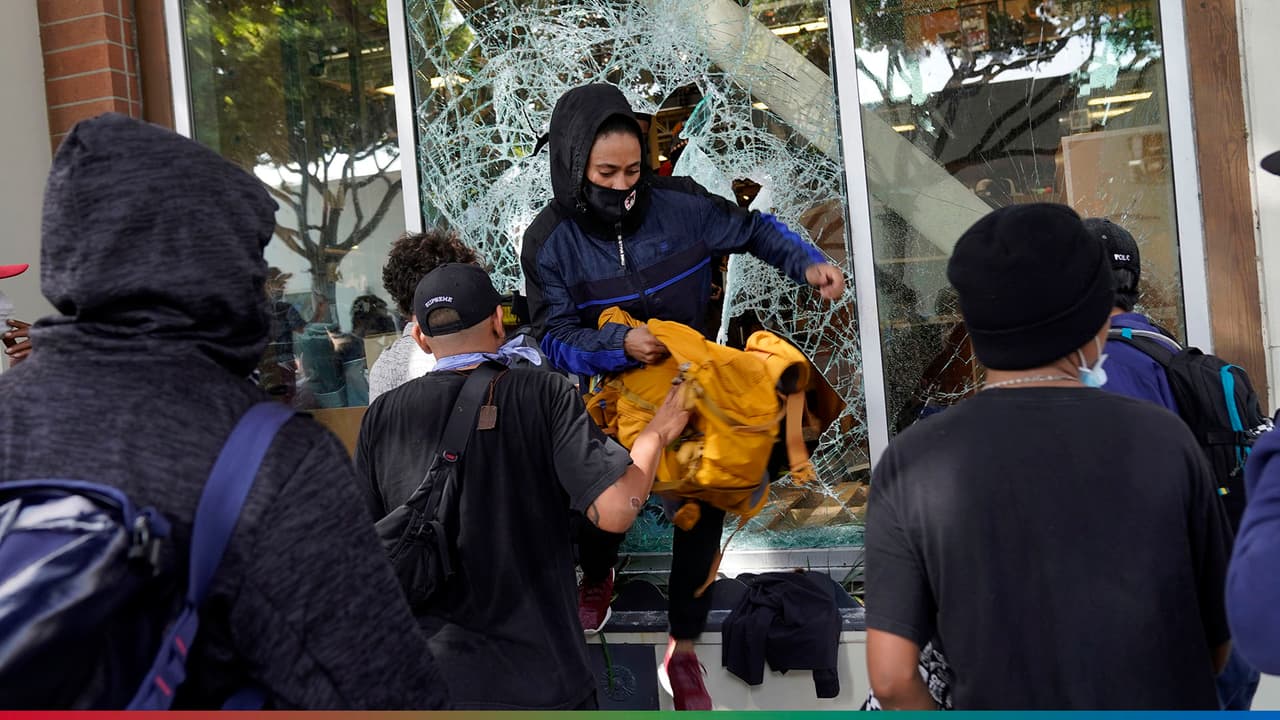 (Video) Mujer arriesga su vida para evitar que manifestantes entren a una tienda durante protestas por la muerte de George Floyd