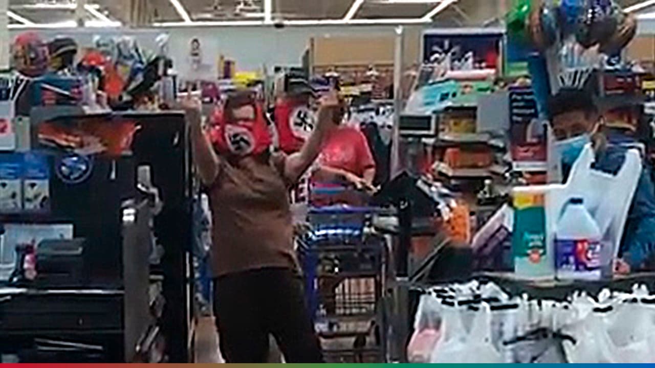 (Video) "No puedes ser americano y ponerte esa mascarilla": corren de tienda a pareja que portaba el logo nazi en su cubrebocas