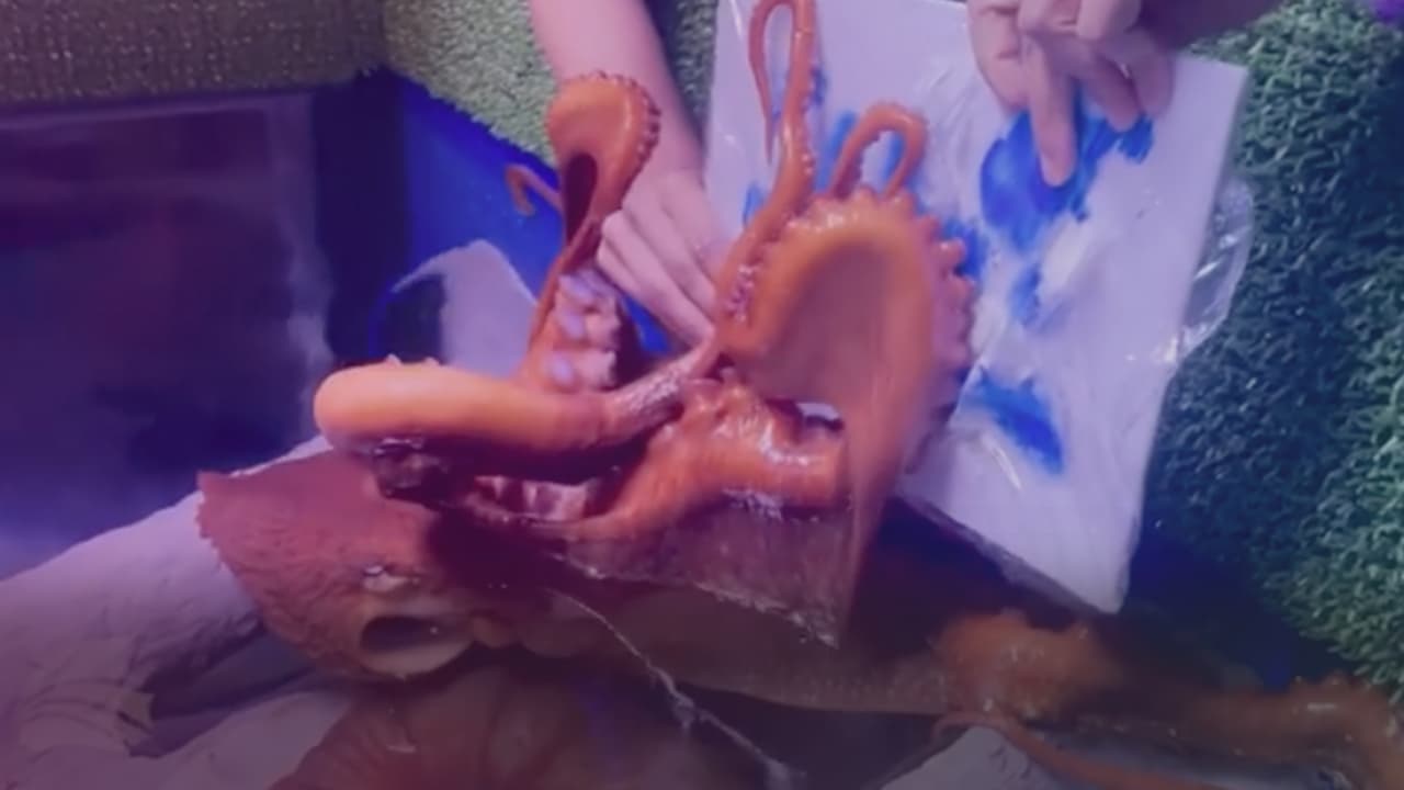 (Video) Pulpo pintor crea obras de arte en acuario de Florida